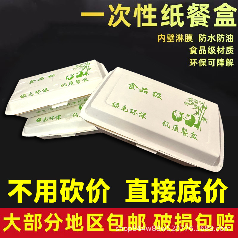使い捨て弁当箱紙弁当箱蓋付きファーストフード長方形ライスバーベキューテイクアウト商業弁当箱
