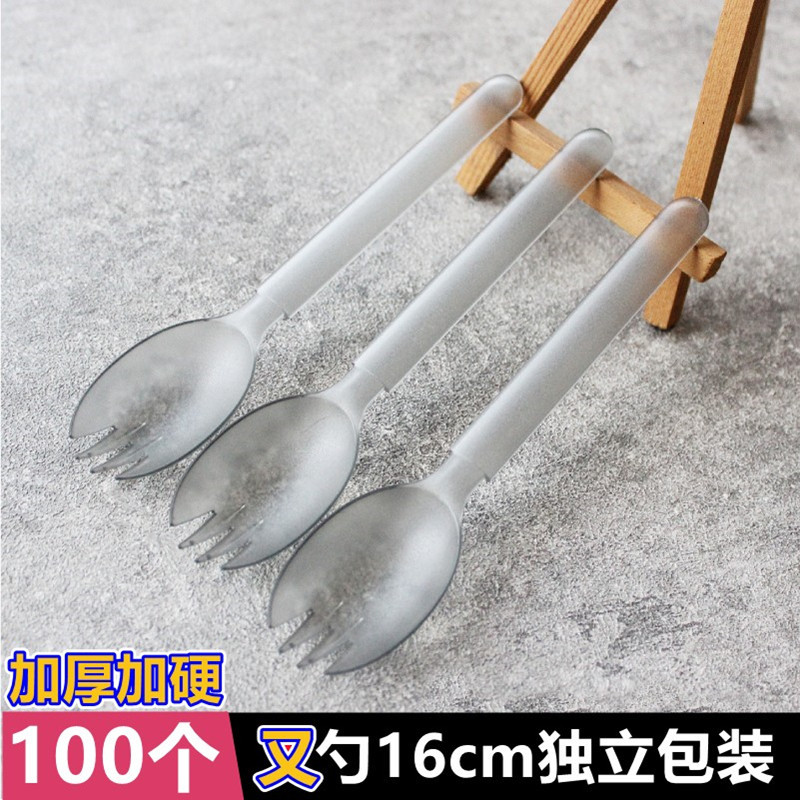 使い捨てフォークスプーンプラスチック独立包装透明つや消し果物すくい一体ケーキ子供サラダ三歯スプーン