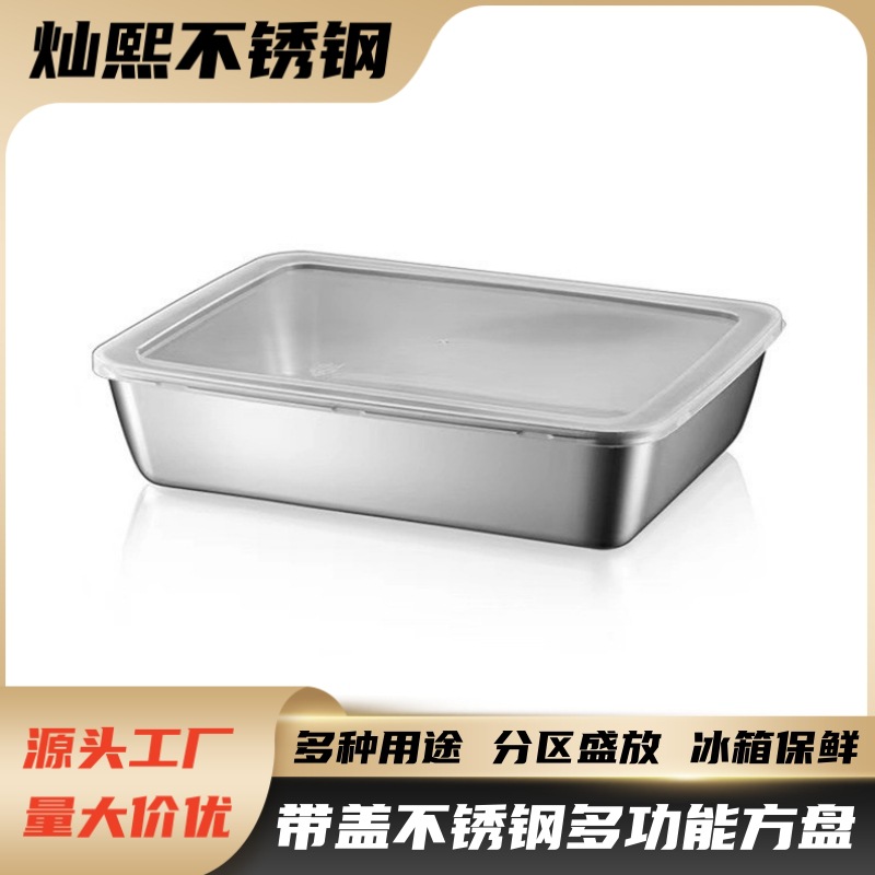 ステンレス製角皿、蓋付き角箱、食品グレードの調理用プレート、平底トレイ、家庭用深皿、タオルトレイ
