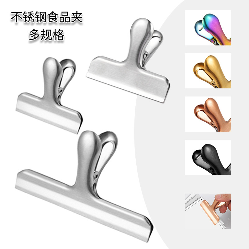 430 ステンレス鋼の食品クリップ大、中、小のスナック防湿 T 字型クリップオフィス用平口クリップシール紙幣クリップ