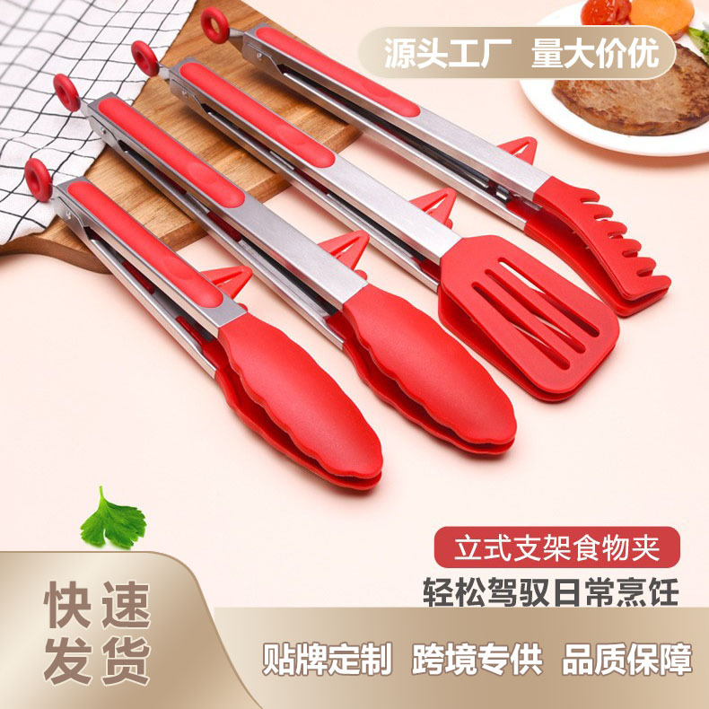 国境を越えたアマゾンfda食品級シリコン食品クリップ4点セットステンレス食品クリップ焼肉クリップ