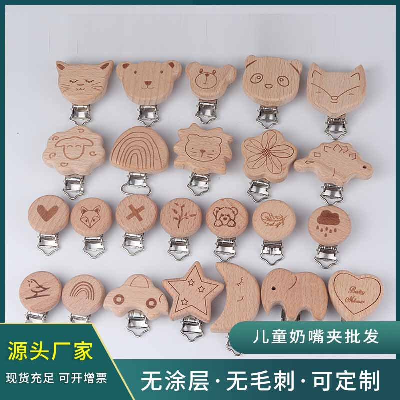 マークのケヤキのミルクの口は外国貿易のメーカーの卸売りの原木の色を挟んで動物の木のクリップのレーザーの彫刻のおしゃぶりのクリップを打ちます。