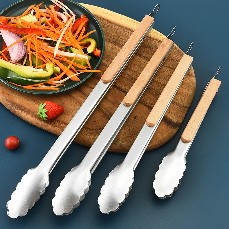 ステンレス食品クリップ木ハンドル滑り止めバー食品クリップキッチン屋外焙煎ツールメーカー直販