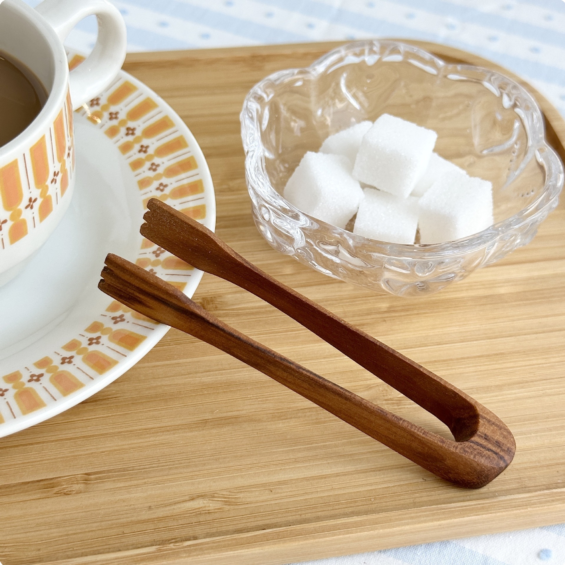 グレープフルーツの角糖クリップの工夫はティーカップのお茶のピンセットの滑り止めクリップを洗ってお茶を入れます。