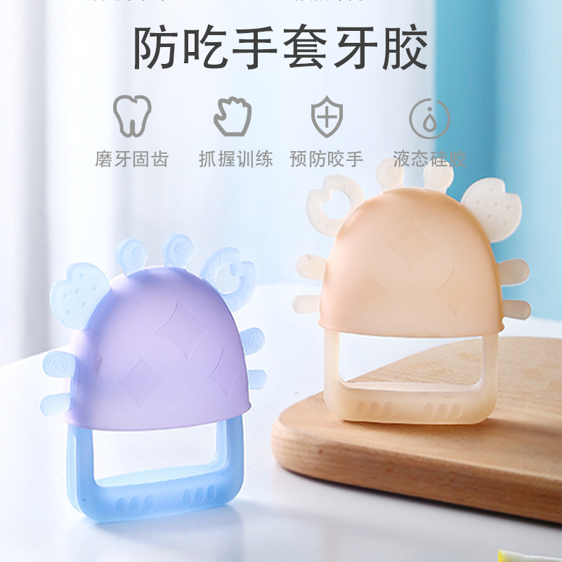 2025 ホットスタイルリトルカニ食品グレード液体シリコーンベビーおしゃぶり赤ちゃんの手を食べるのを防ぎ、歯が生えるのを和らげる噛むスティック
