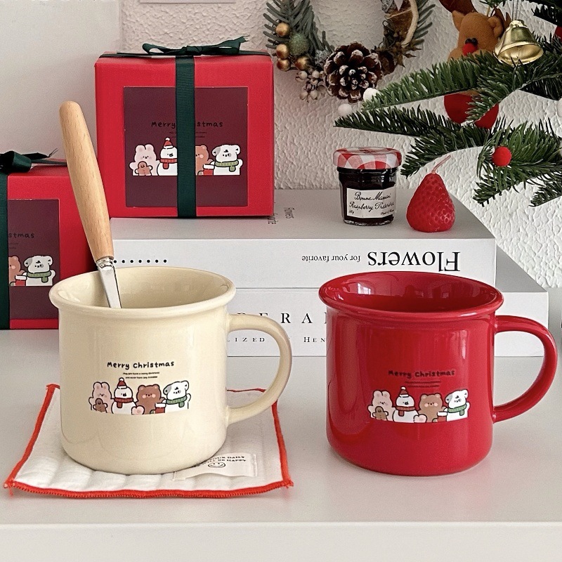 Ins新年クリスマスマグカップ新型アニメ熊陶磁器カップコーヒーカップカップルカップギフトカップ