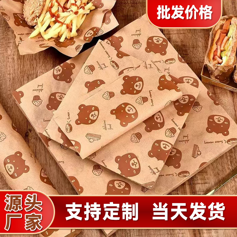 卸売り食品包装紙アメリカ印刷防油紙熊金揚げ皿パッド紙使い捨てサンドイッチ紙