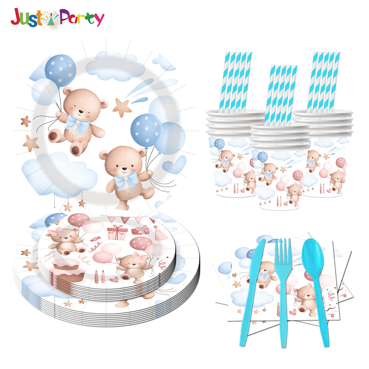 漫画くま诞生日パーティーパーティー装饰アレンジ用品纸コップティッシュペーパー皿使い舍て食器セット