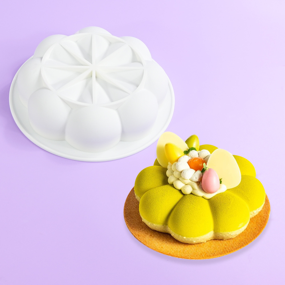 8弁の花ムースのケーキの型の大きい菊のフランスのデザートのシリカゲルの型の立体の愛の熊の香薫のろうそくの型