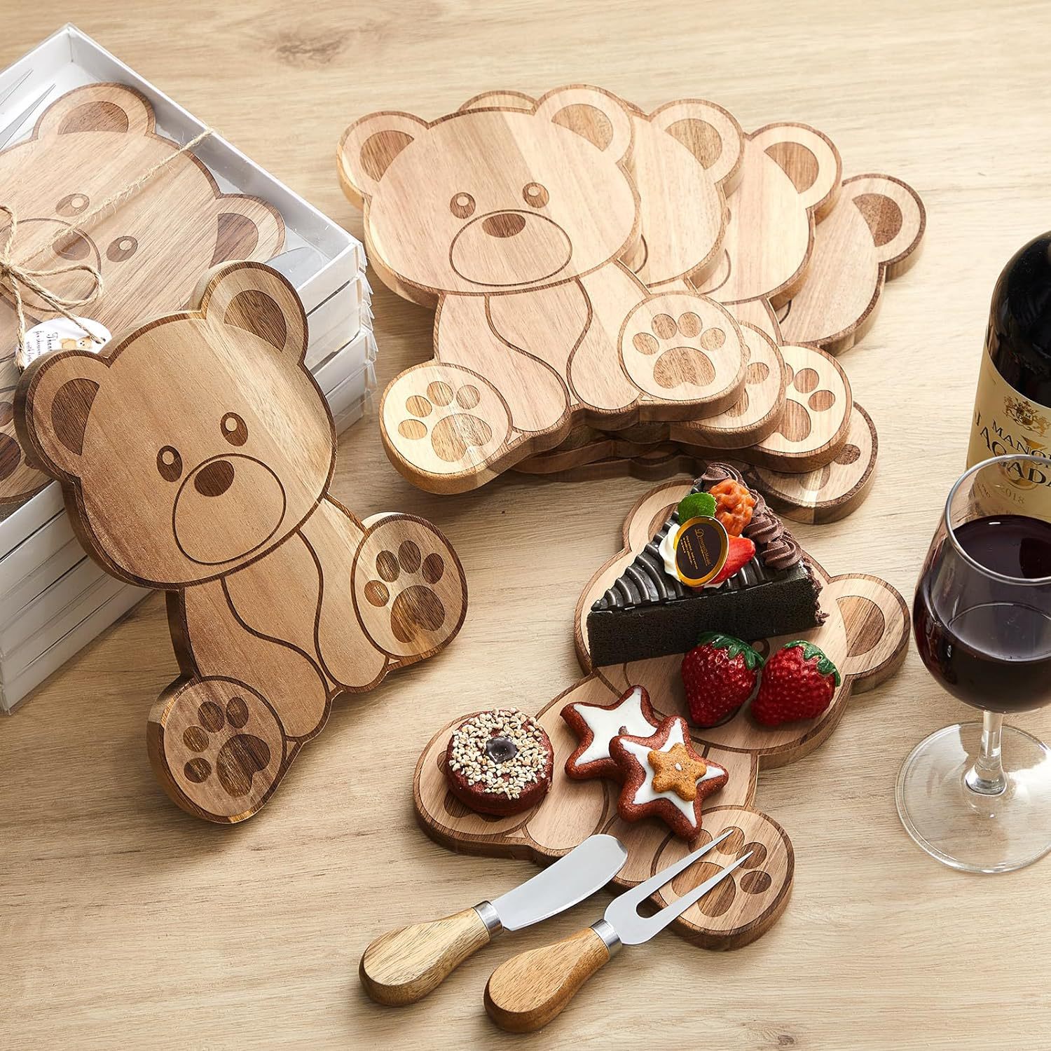 アカシアの木のまな板の家庭用チーズの板のセットの熊の形の熟食のまな板の木製の赤ちゃんのまな板の卸売り