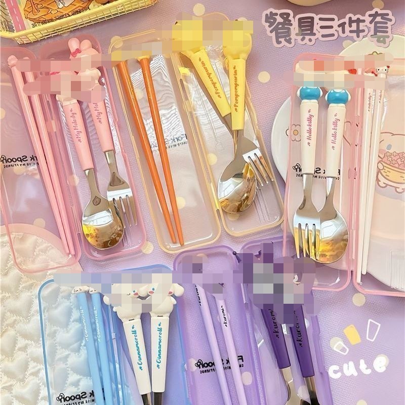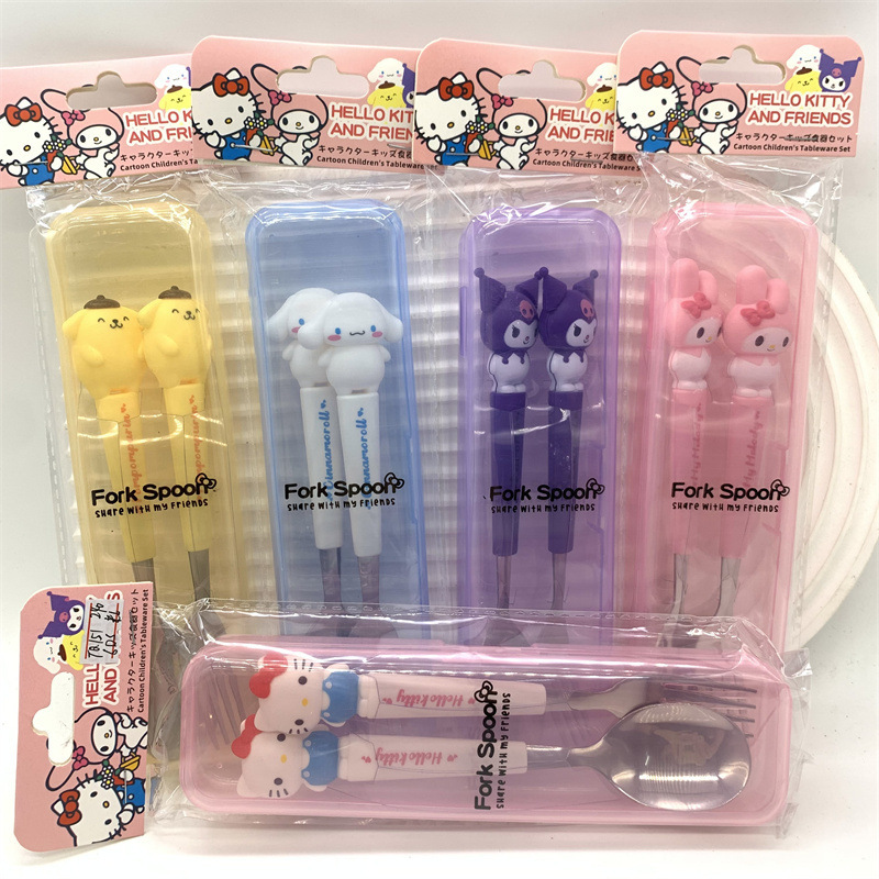 箱入りステンレススプーン箸フォーク携帯食器紫庫米大耳犬児童学生食事公仔造形食器