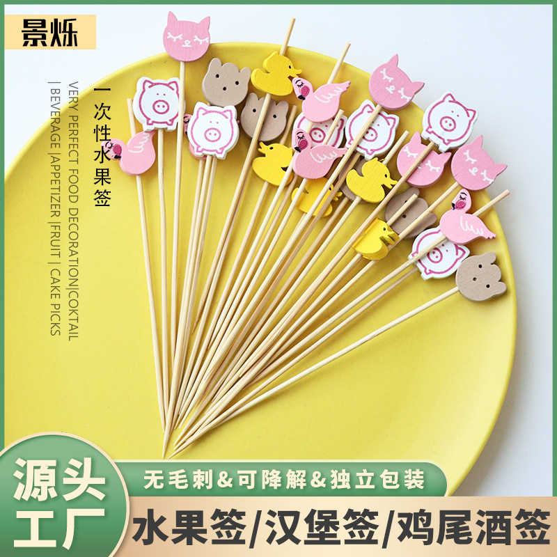 ハンバーガーカクテルピック 100 個/パックフラミンゴ猫頭クマピックインターネット有名人使い捨て竹ピックかわいい漫画