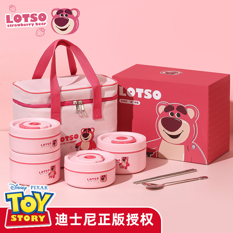 Qifang Strawberry Bear ステンレススチール製断熱ランチボックス、オフィスワーカーや学生向けの特別な長期断熱ランチボックスセット