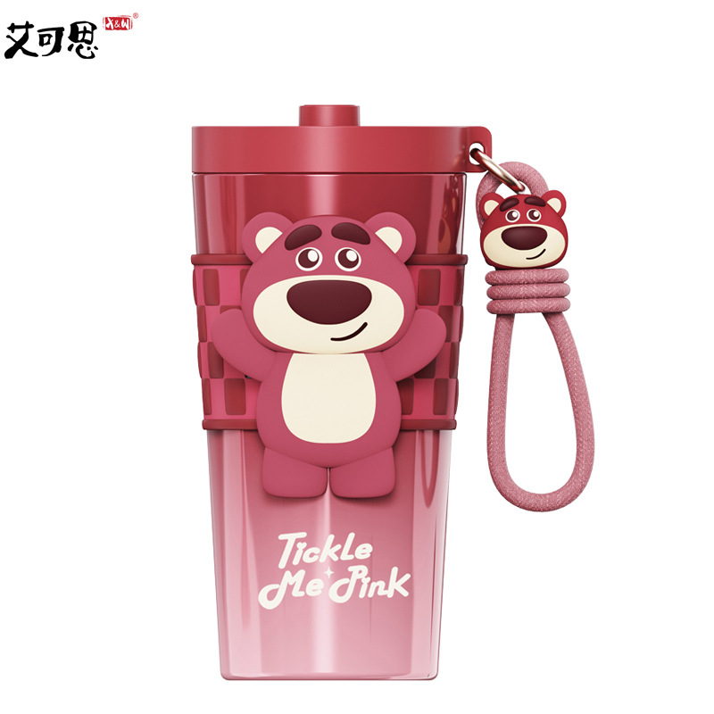 艾可思工場創意かわいいいちご熊新尚保温カップ650mLステンレスストロー直飲コーヒーカップ
