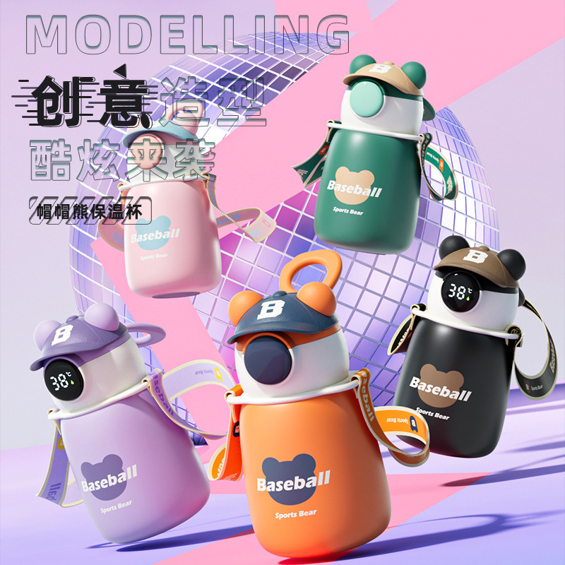 帽子熊高颜値ins風保温カップ震え音同型学生ファッションシンプルステンレスコップストロー