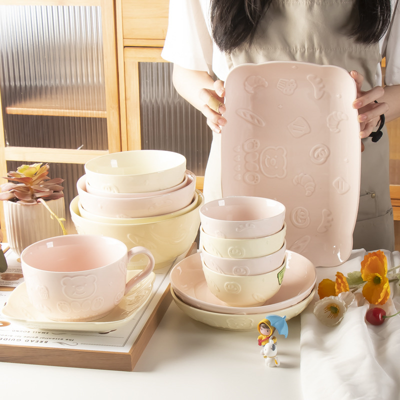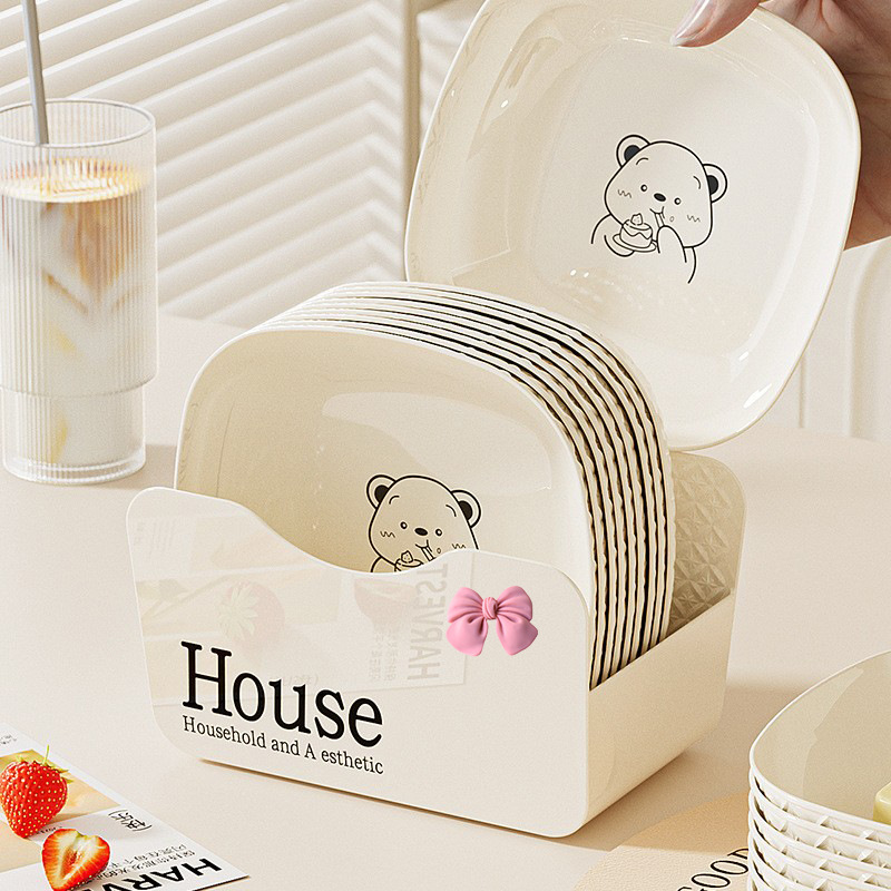 Insパン熊喬遷碗皿セットアニメ創意家庭用碗皿2024新型食器軽豪華皿スープ碗
