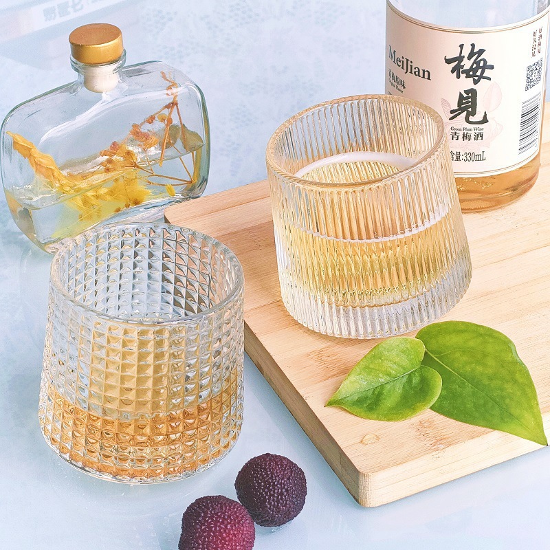 タンブラーウイスキーワイングラス回転シェーカーグラス厚みのあるクリエイティブログハンマーパターンビールドリンクカップ