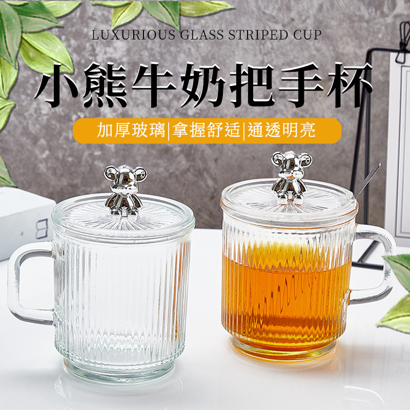 水カップガラスハンマーパターンハンドルカップ高温耐性クマカップスプーン蓋付き家庭用ハイエンドライト高級ガラスカップ