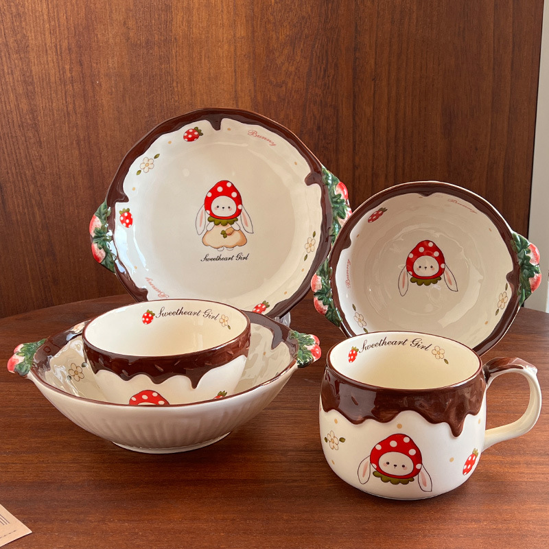 いちご人形食器パスタ皿ボウルセット家庭用アニメ陶器皿かわいい風サラダボウルセット