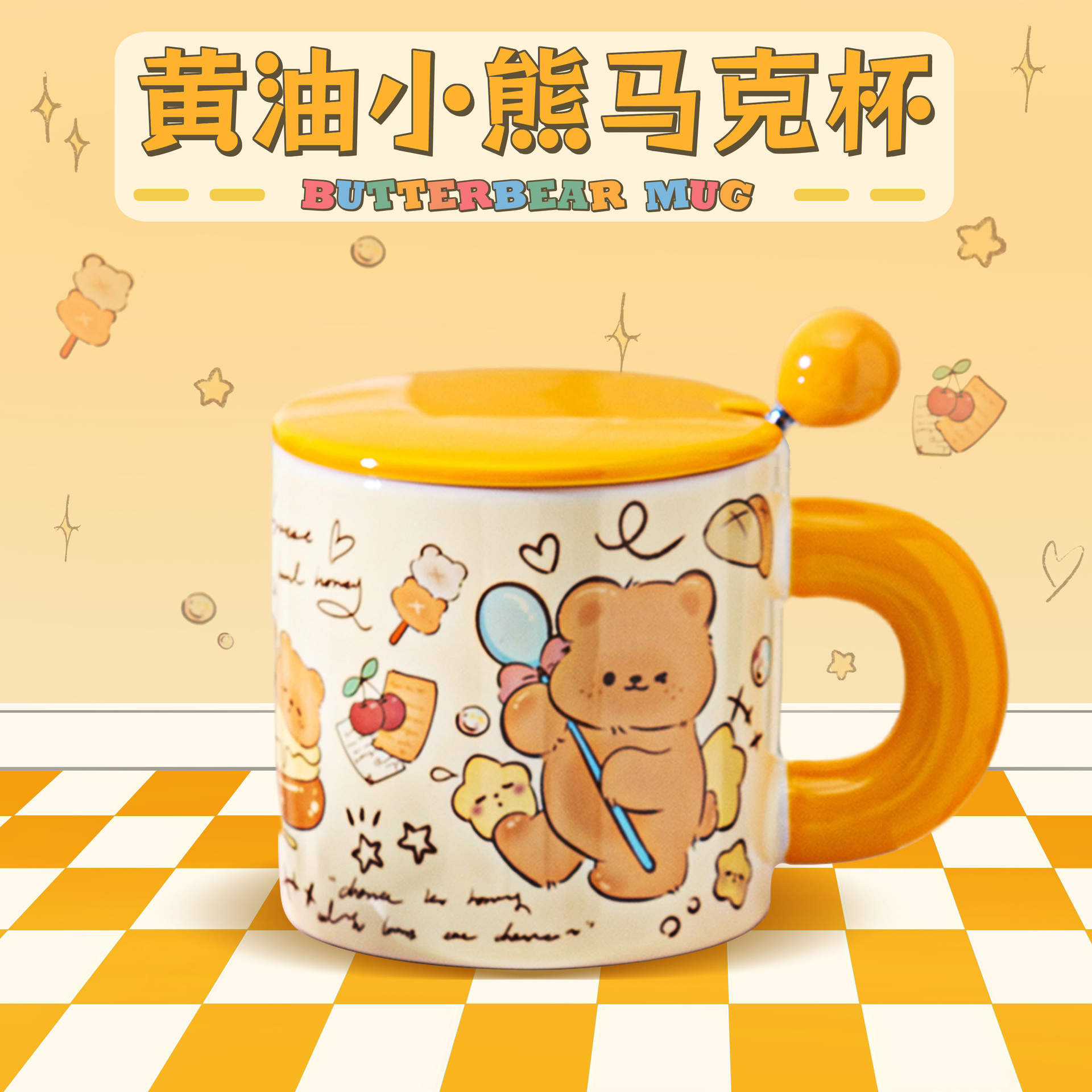 アニメかわいいバター熊陶磁器マグカップ蓋付きスプーン付きオフィス寮女子がコップを飲むお土産