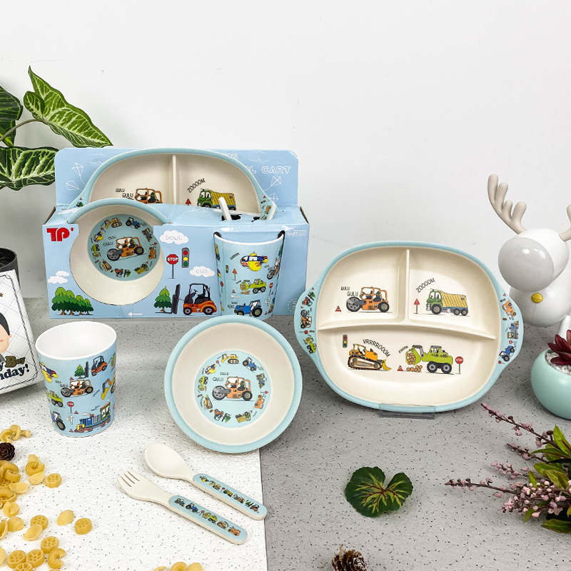 竹繊維子供用食器セット卸売クリエイティブな形のプレートかわいいベビーボウル模造磁器分割車用ディナープレート