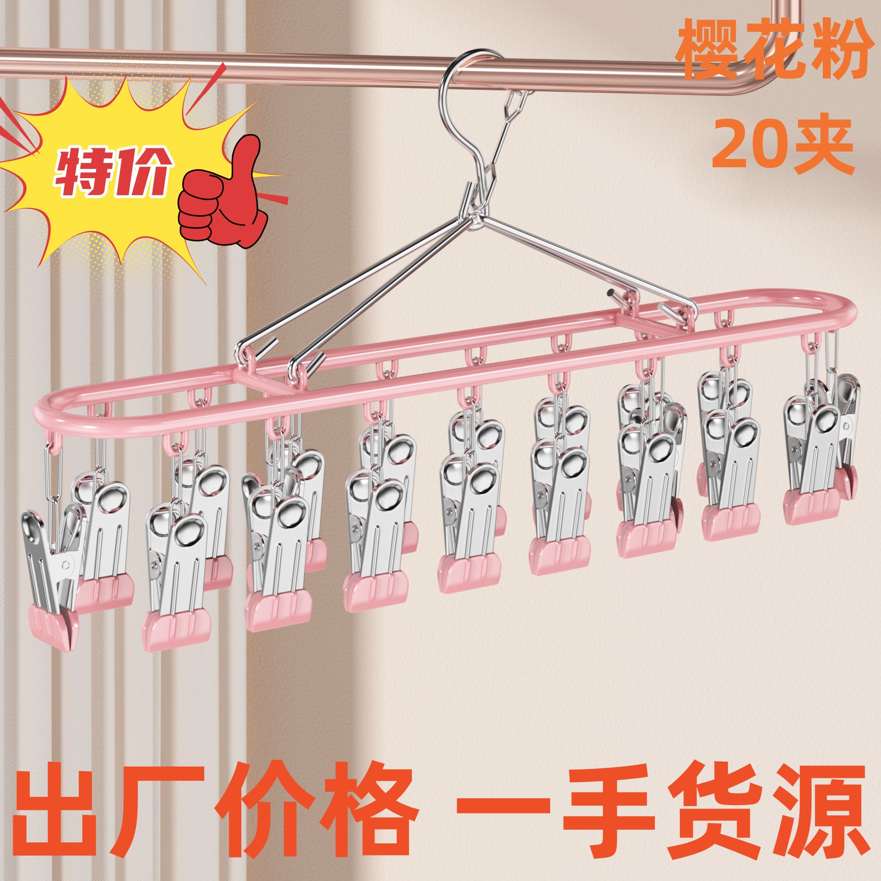 ステンレス製折りたたみ式防風縮小衣類ハンガー、多機能クリップ付きワードローブ用物干しハンガー、靴下干し35、靴下乾燥用