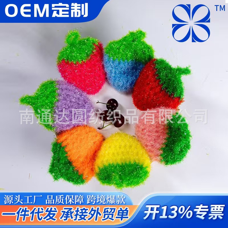 【在庫あり】韓国製純手編み厚手クロシェ編みストロベリータオルたわし、油分を含まず、糸くずが出ない