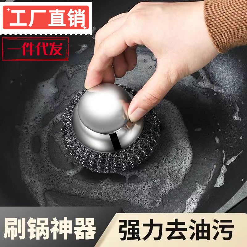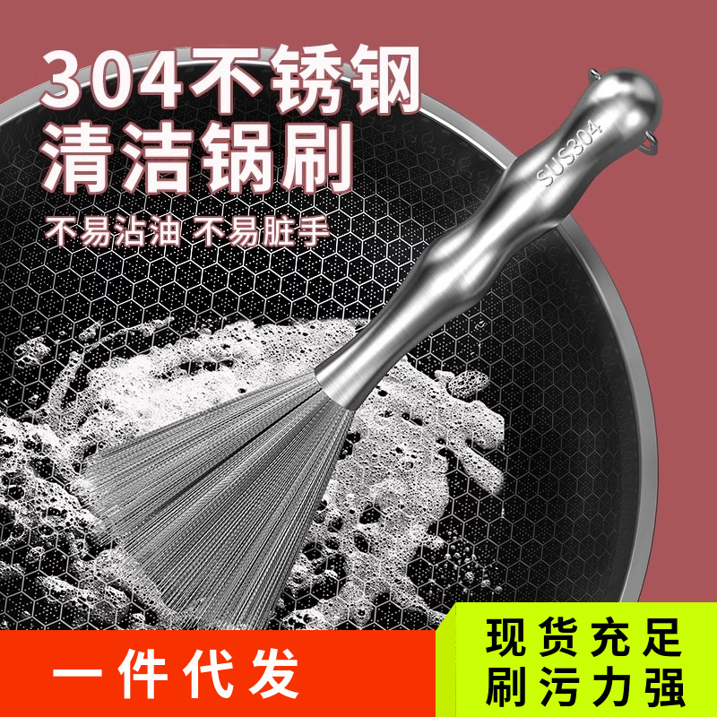 304鍋ブラシキッチン専用ステンレス洗浄ブラシ家庭用汚れ除去ブラシ鍋神器厚さ延長ワイヤーブラシ