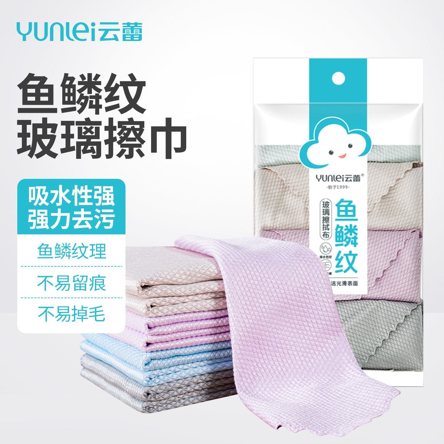 云蕾鱼鳞纹擦玻璃无水印抹布清洁布吸水不掉毛不沾油无痕抹布