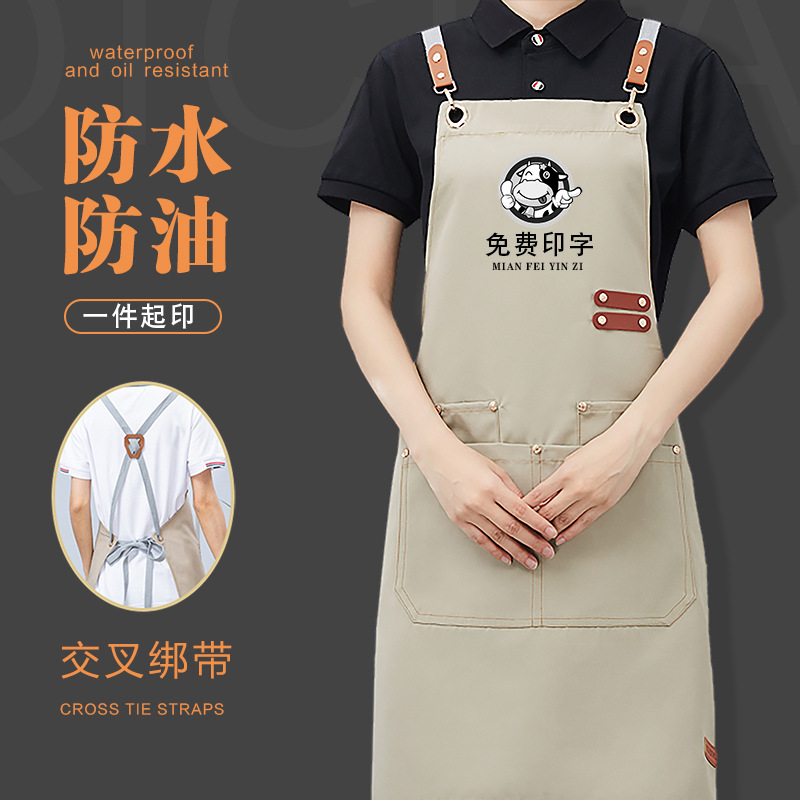 新型ファッション防水エプロンキッチン家庭用シンプルなウエスト女性耐摩耗性出勤焙煎作業服男性印字