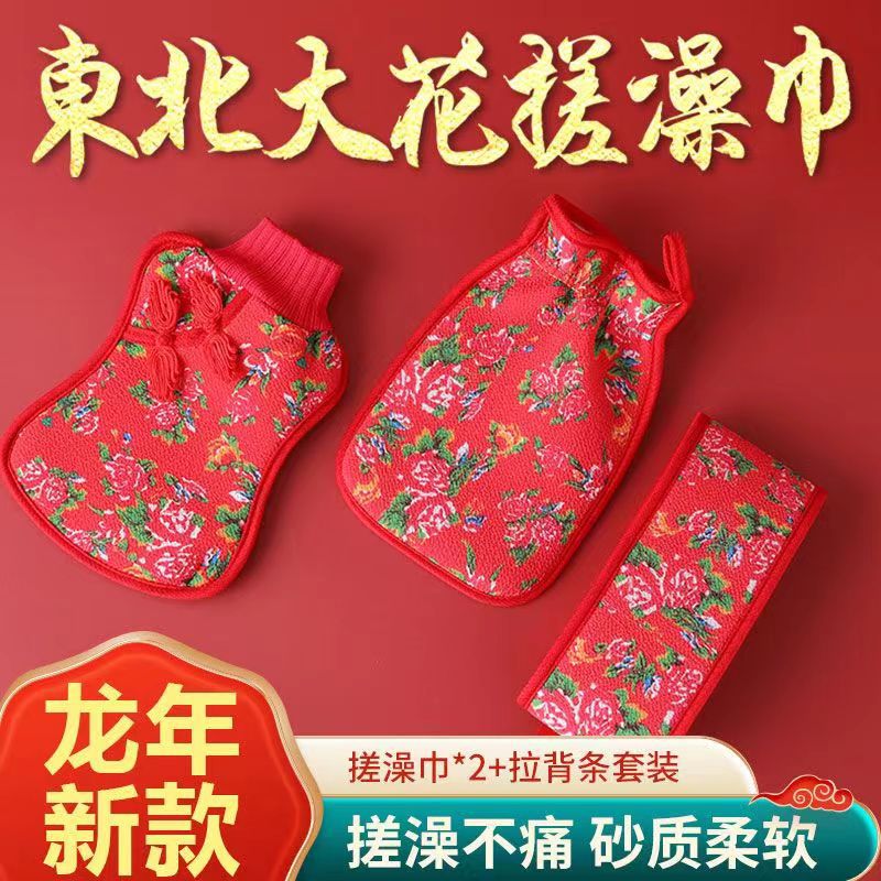 2024東北大花バスタオル国潮バスタオル背引き両面女性男性は家庭用泥磨き背中を痛めない