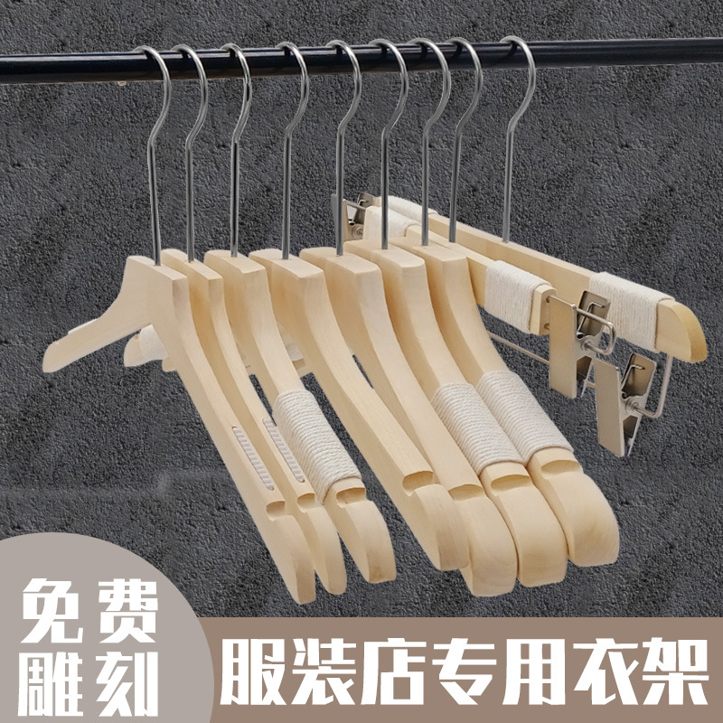 洋服店専用ハンガー実木女装児童男装服掛け無痕滑り止め厚手太め木製ズボン掛け
