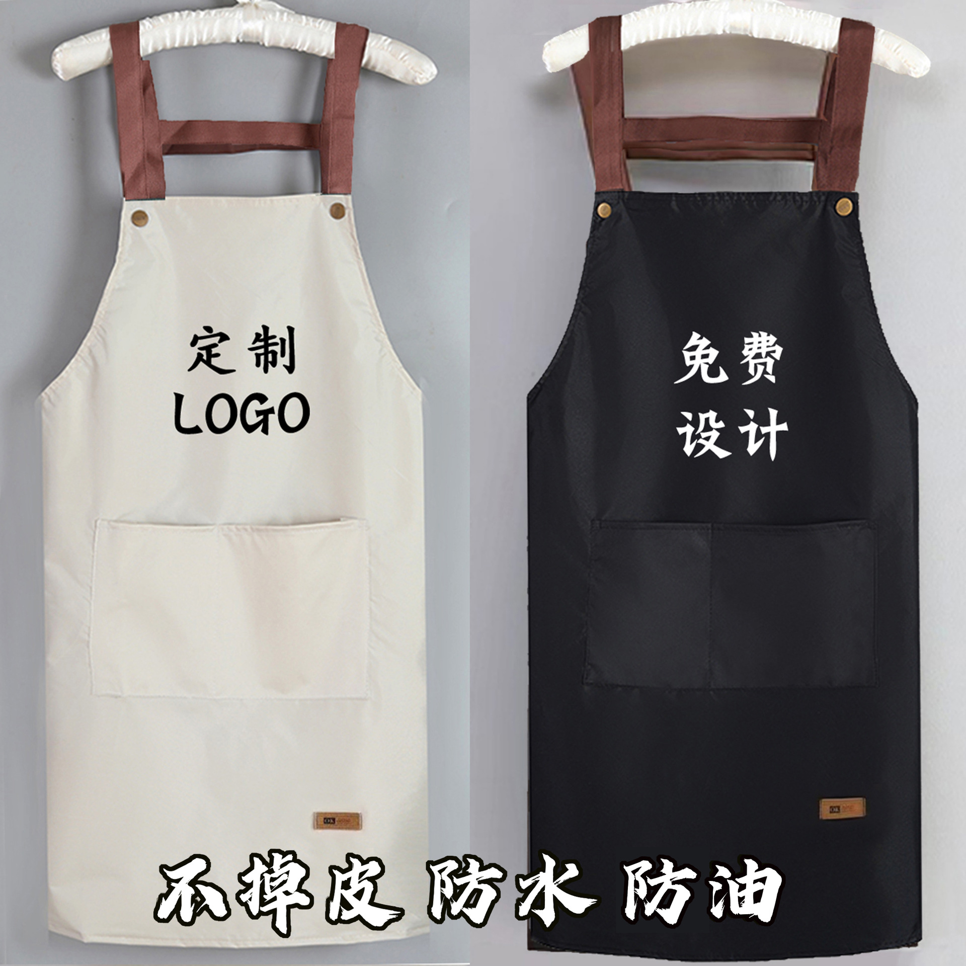 新型エプロンキッチン防水防油出勤作業服飲食女性韓国版ウエスト薄い男性定印字ロゴ