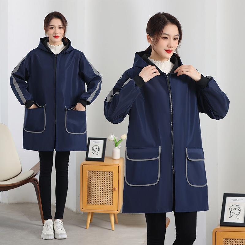 ベルベット厚手ブラウス大人反射ストリップ家庭用キッチン防水防油長袖女性コート作業服冬