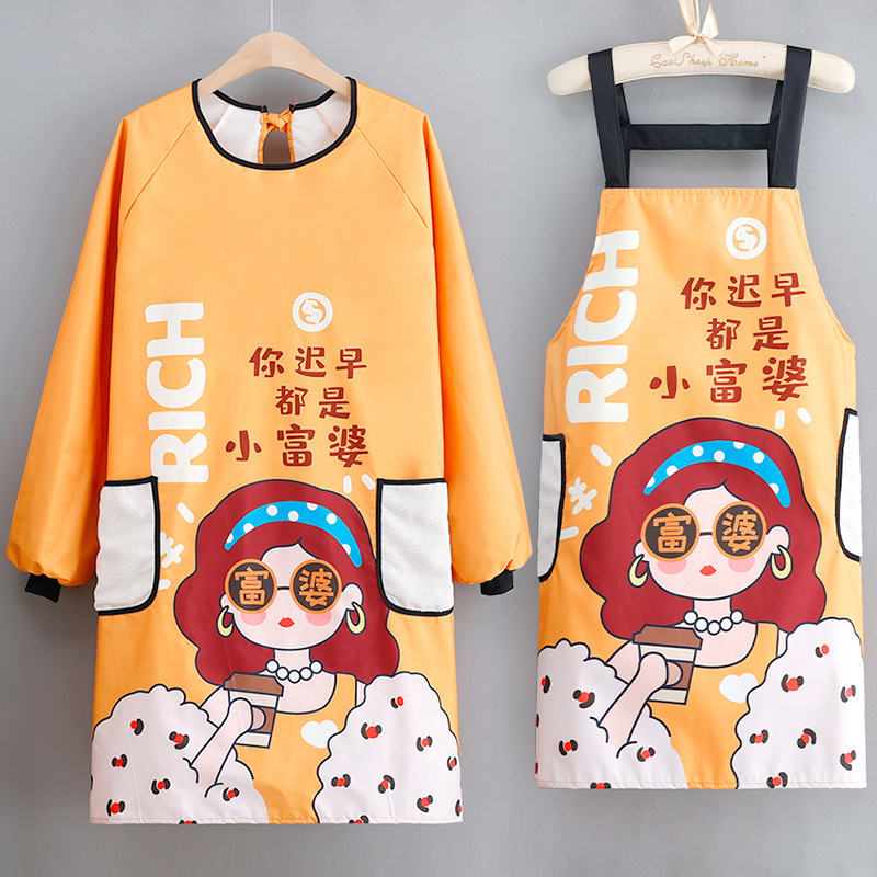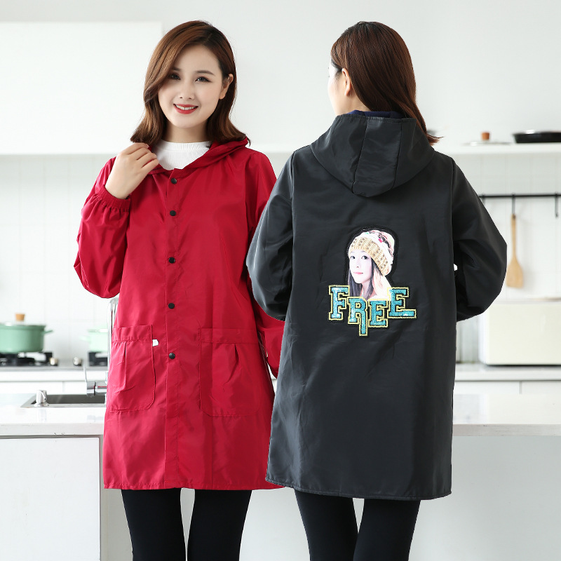 韓国版ファッション長袖カバー女性家庭用キッチン料理エプロン防水防油可拭き手作業服大人