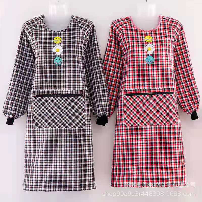 女性用の新しいチェック柄防水スリーブ、ファッショナブルなロングスリーブ、油汚れ防止家庭用スリーブ、大人と学生向けの卸売