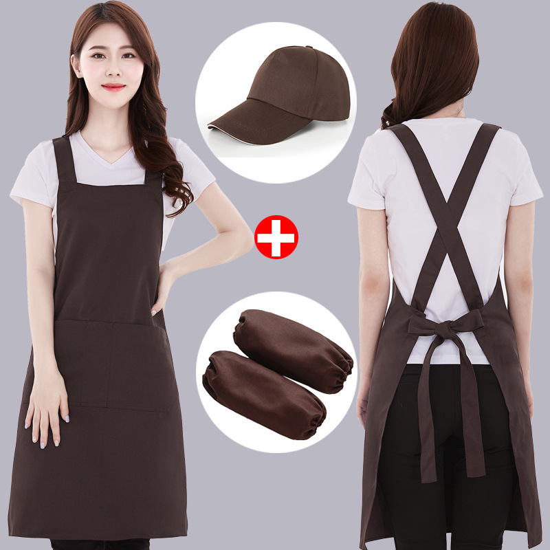 エプロン三点セットロゴ飲食専用スーパーミルクティー店男女ファッション作業服印字サービスマン
