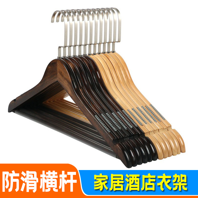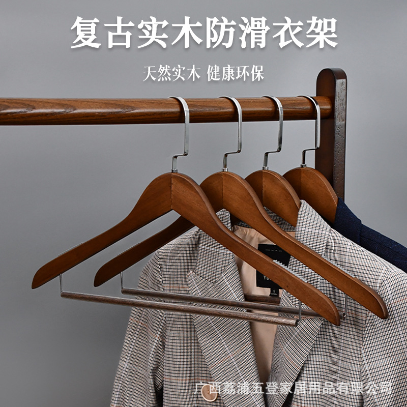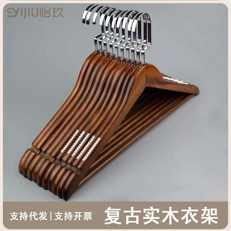 レトロ木製ハンガー洋服店女装ホテル専用滑り止め成人ハンガー民宿実木服掛けズボンクリップ