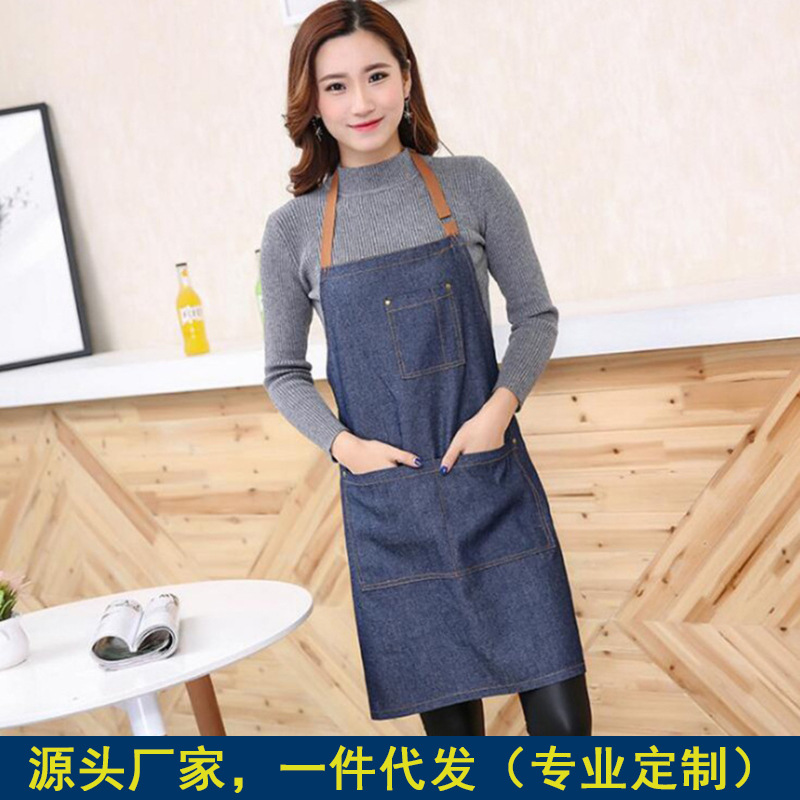 アマゾンのデニムのエプロンは首の青いデニムのファッションの韓国版の成人の防水の仕事のエプロンを掛けてlogoを印刷します。