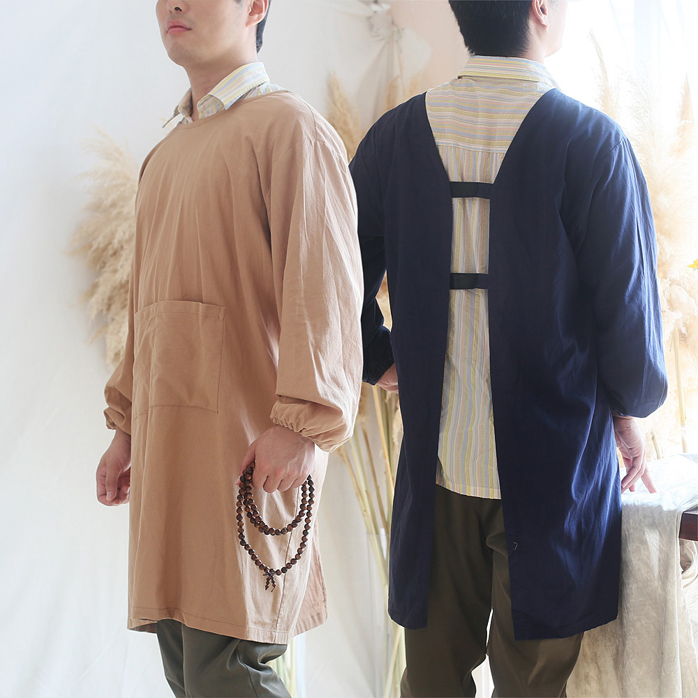 新しい対外貿易綿防水逆ドレッシングホームシンプルなキッチンブラウス長袖防汚エプロンスタジオ作業服
