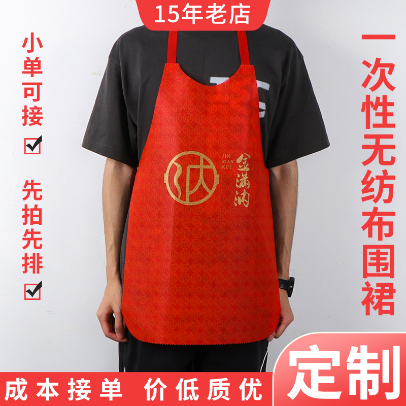 不織布エプロン テイクアウト バーベキューエプロン ロブスター鍋料理店用 エプロン ロゴ印刷 大人用