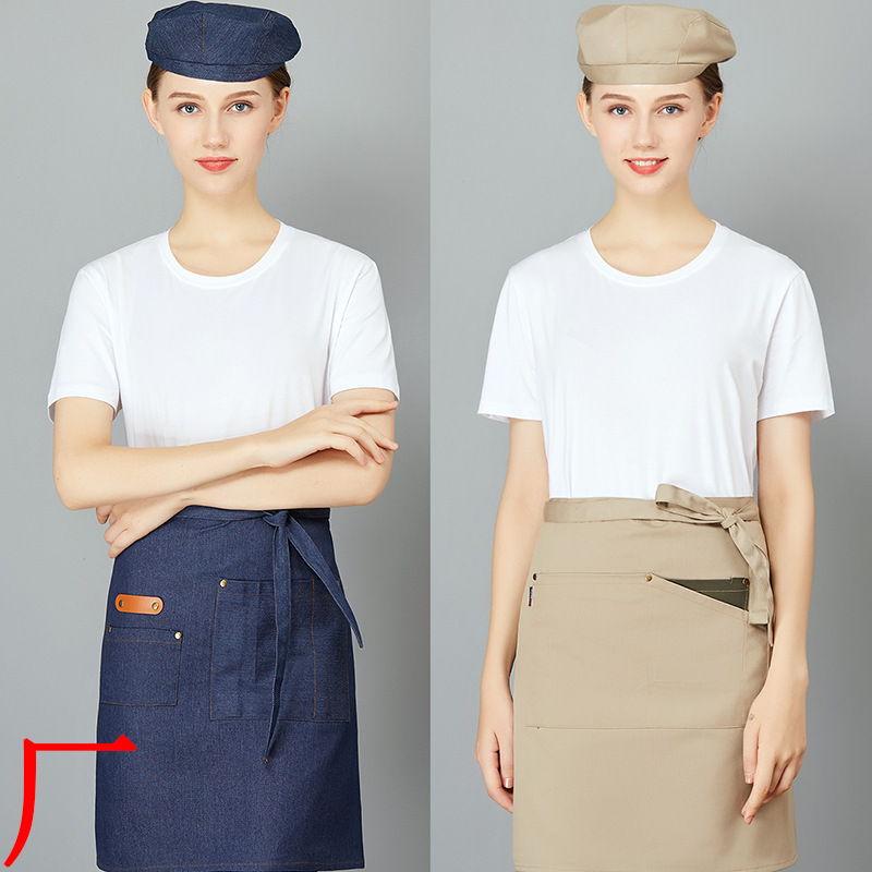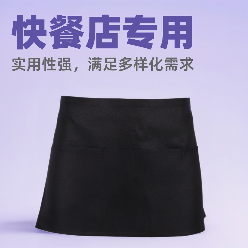 ウェイター用半身エプロン、多機能、3ポケット、無地、防汚、バーベキュー用、多用途で実用的