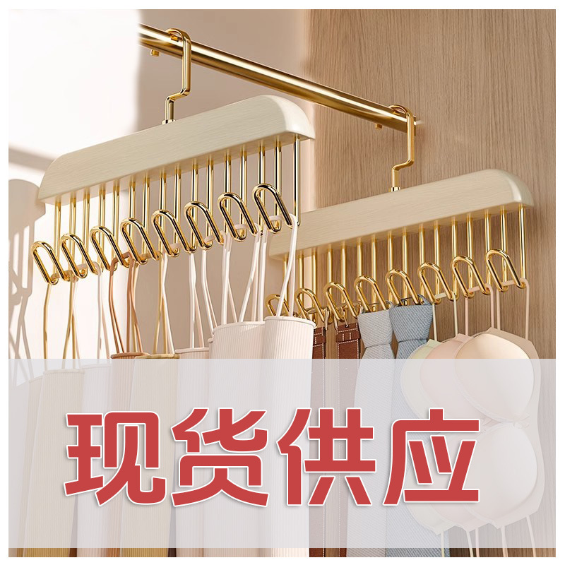 新品ホワイト8フックハンガー多機能ストラップ下着ブラジャーベスト収納家庭用無垢材フックハンガー