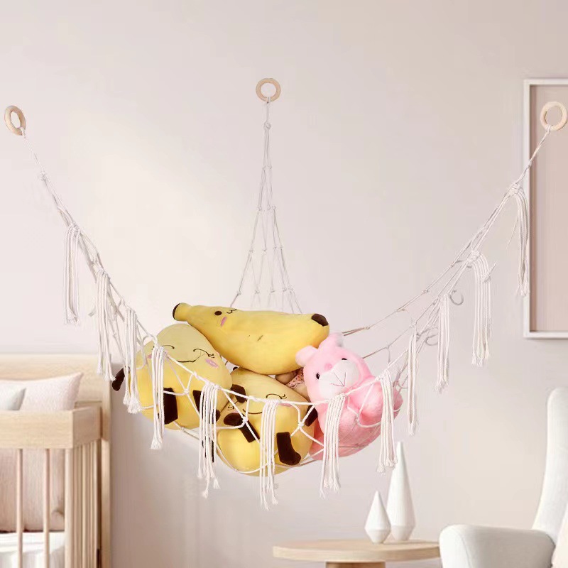 クロスボーダー三角玩具網兜手編み玩具レースハンモックボヘミアン掛け玩具収納ベッド