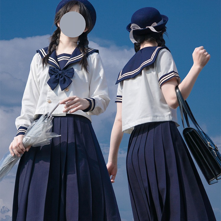 オリジナルJKユニフォーム正規ホワイトカラー紺二本セーラー服ミリタリースカートセット学院風長半袖校給付クラス服