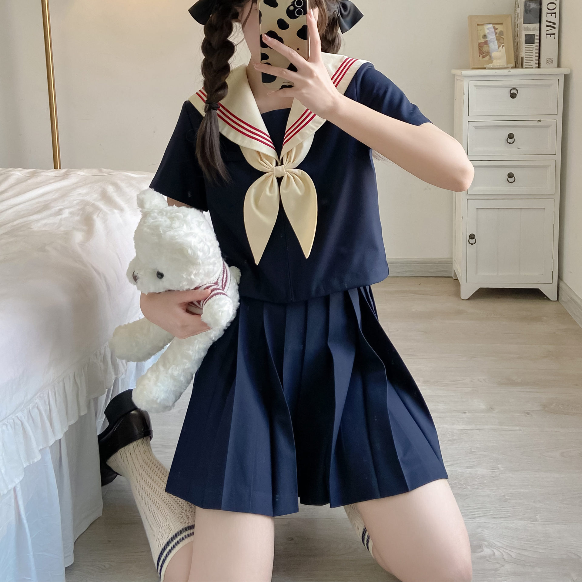 正統派JKプリーツスカートセーラー服スーツ制服日本の不良女子ショートスカートカレッジスタイル2年生学生服