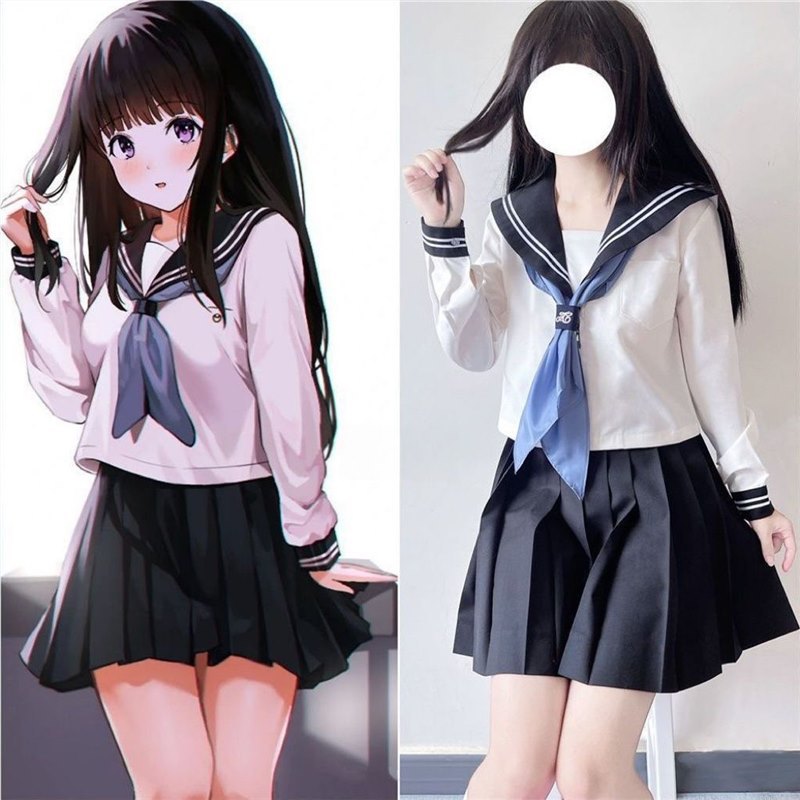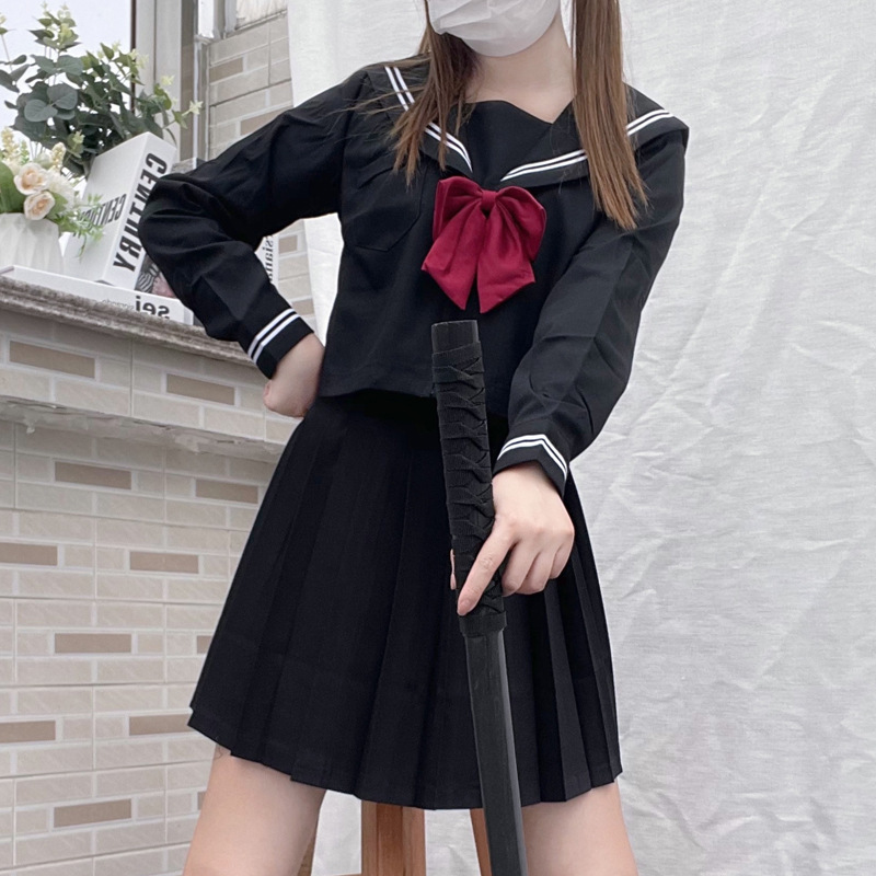 黒二本基礎モデルのセーラー服正統jk制服スカート学院風制服クラス服女子学生演技服セット