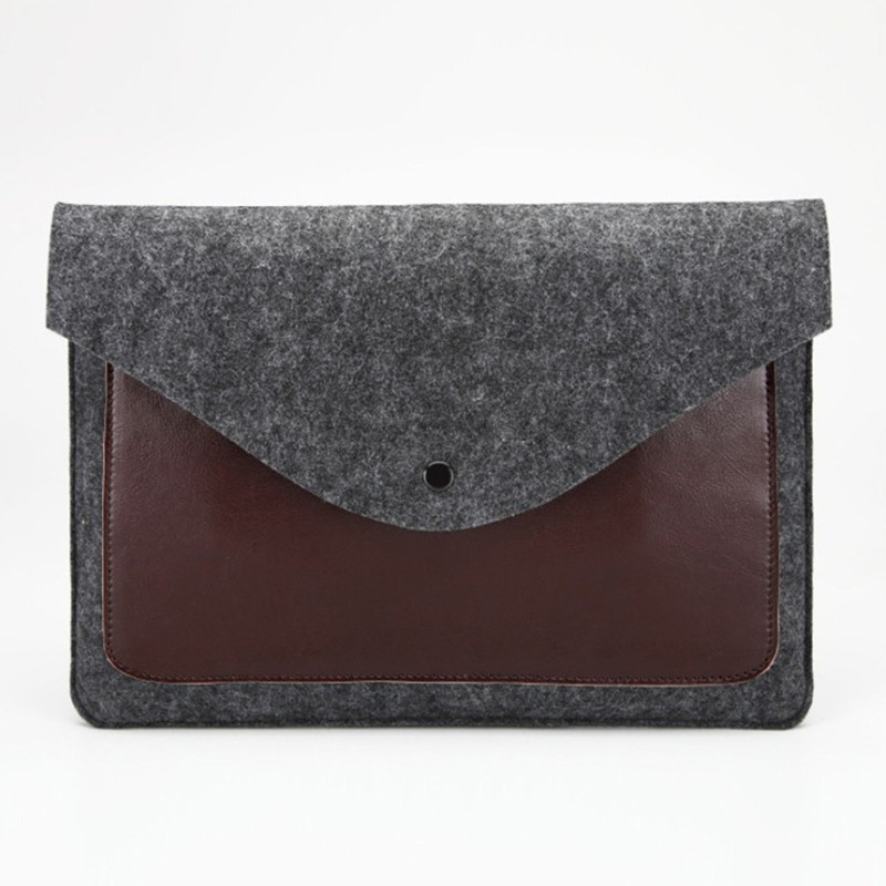 代发毛毡商务电脑内胆包毛毡皮革手拿包便携带时尚手拿毛毡电脑包