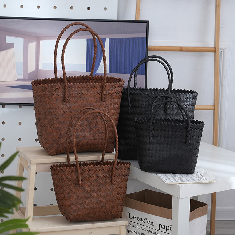 新しいレトロなトートバッグ、ファッショナブルでシンプルな休暇用草編みバッグ、女性用編み込みハンドバッグ、籐風のホリデーギフトバッグ