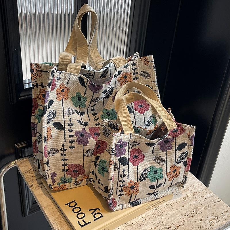 新しいキャンバスハンドバッグジャカード刺繍手提げ袋民族風バッグ出勤カジュアルジッパーバッグハンドバッグ女性